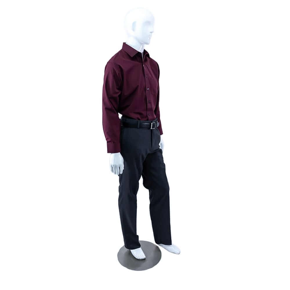 Pantalón de vestir/ gabardina, camisa de vestir y cinto de piel. Se pueden agregar corbata y/o otros accesorios.